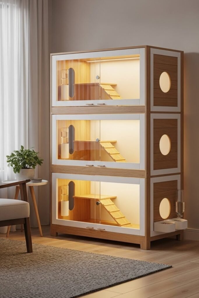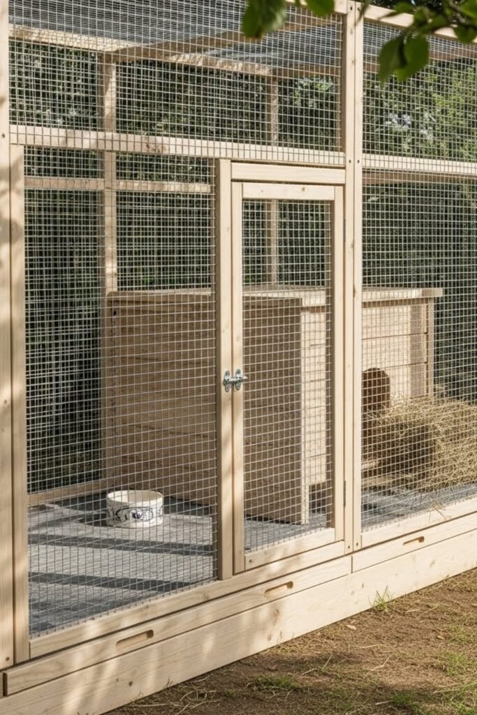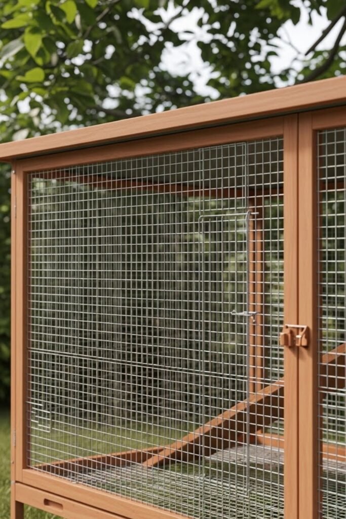 Solid flooring helps protect interiors, while wire doors allow airflow. This style often blends with furniture so it doesn’t look out of place in living areas.
