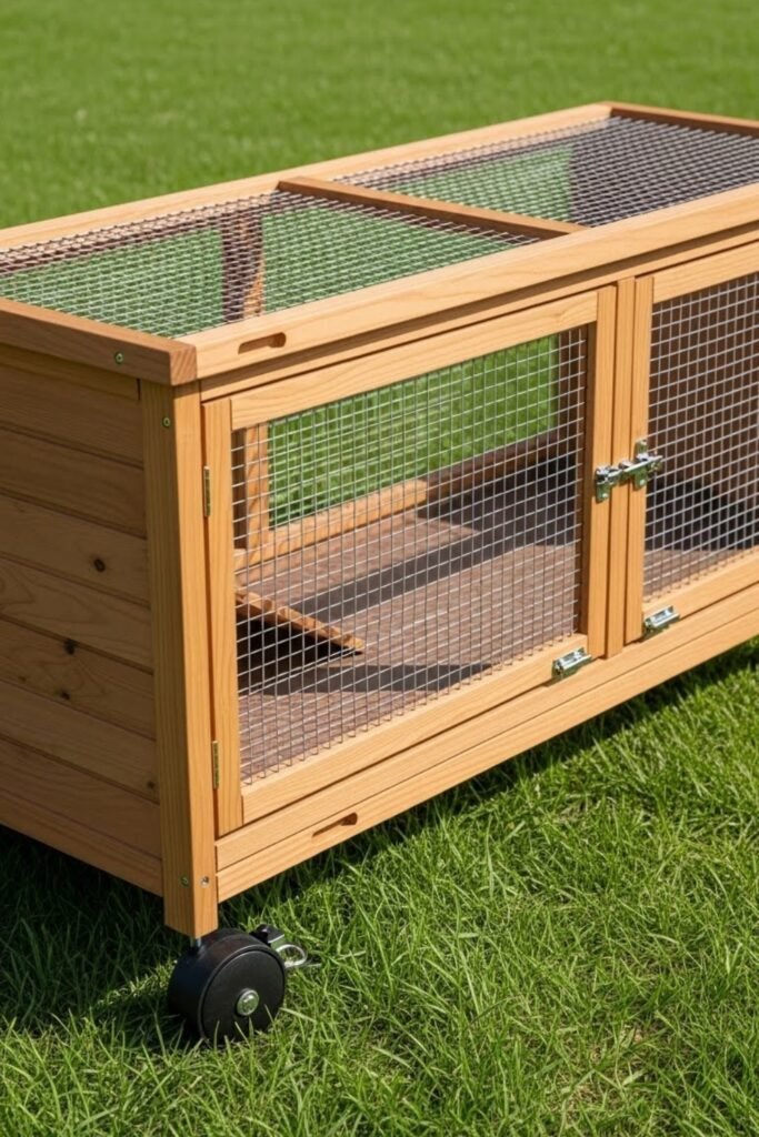 A rolling hutch includes sturdy wheels so you can move it around your yard. This allows rabbits to access fresh grass while preventing overgrazing in one spot.