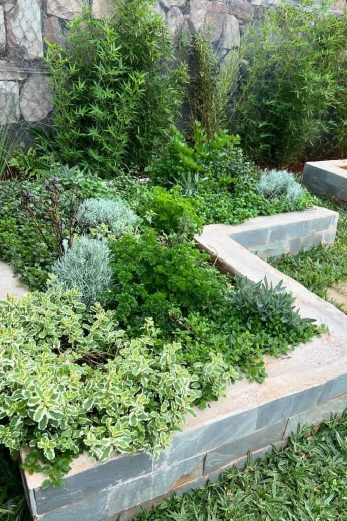 A stone frame keeps your herb bed strong and stable, helping soil stay cool and steady through hot days and sudden weather changes.