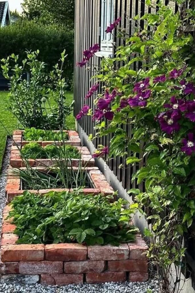 Stacked bricks create sturdy raised beds that hold warmth, helping herbs grow faster while keeping soil from washing away.
