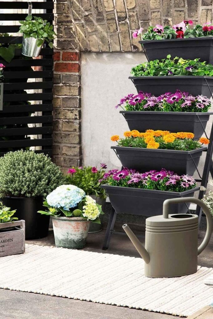 A stepped planter brings multiple growing levels into one spot, letting you raise herbs upward when ground space feels extremely limited.