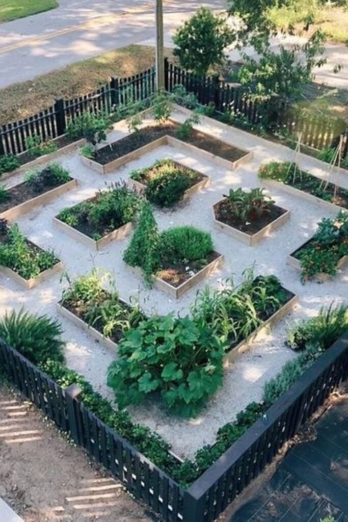 Use this for larger yards where a clear structure makes watering, pruning, and harvesting easier throughout the growing season.