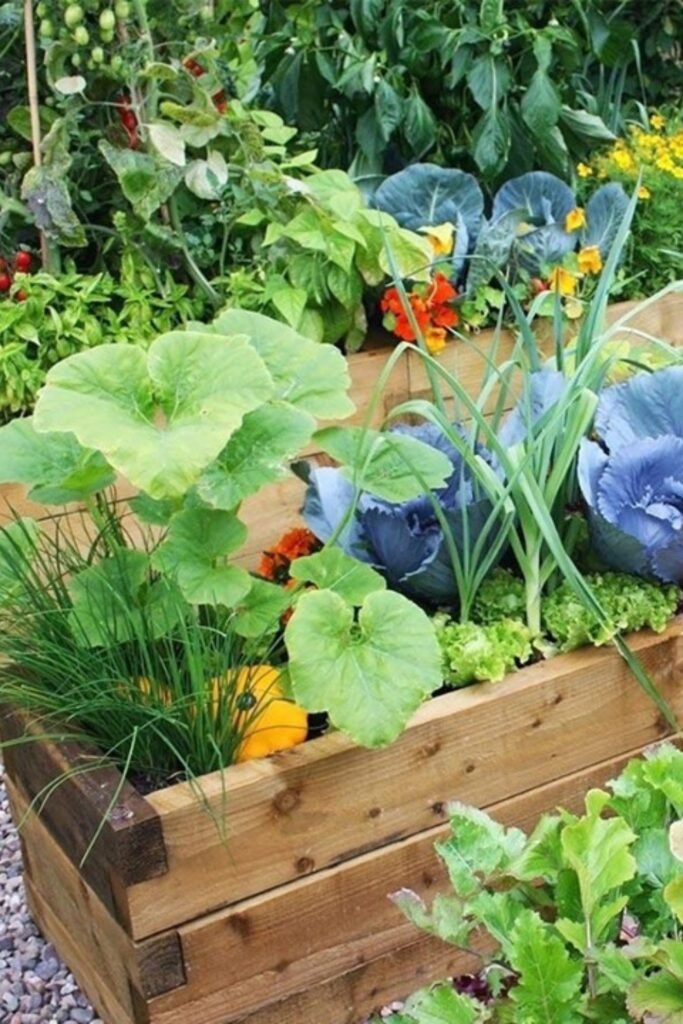 A timber bed lets herbs and vegetables grow together, helping each plant stay healthier by sharing space that encourages natural airflow.