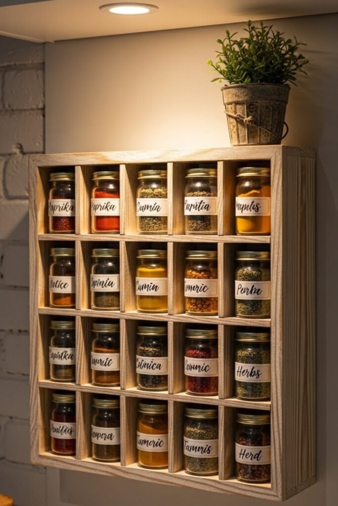You can rearrange the layout anytime as your spice collection changes. This idea is ideal for creative kitchens that need flexible organization.