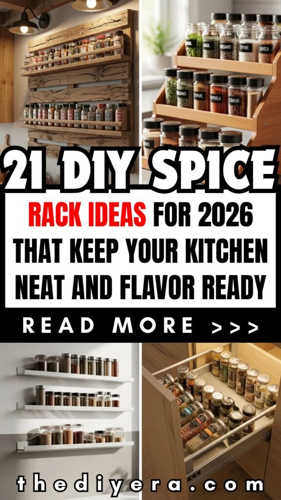 In this article, you’ll find 21 practical DIY spice rack ideas that help you organize spices neatly while saving space, improving access, and adding style to your kitchen setup.