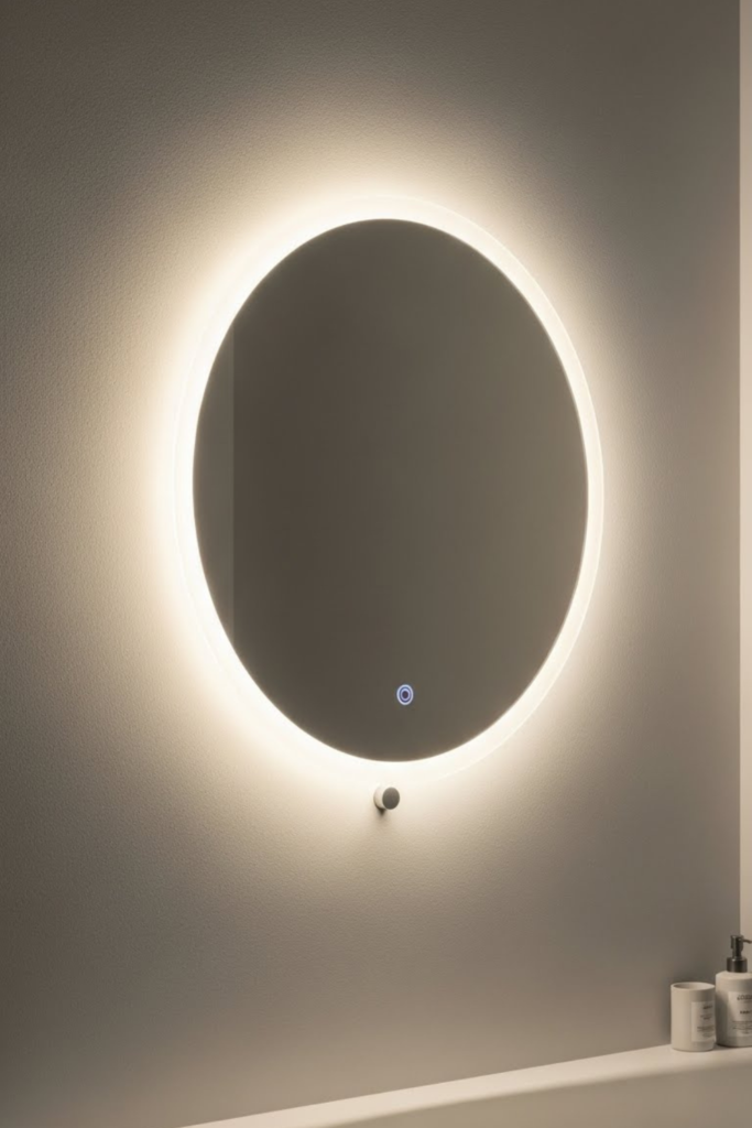 The hidden lights create a soft halo around the mirror. This style adds a sleek, modern feel and works well with wall-mounted vanities or minimalist setups.