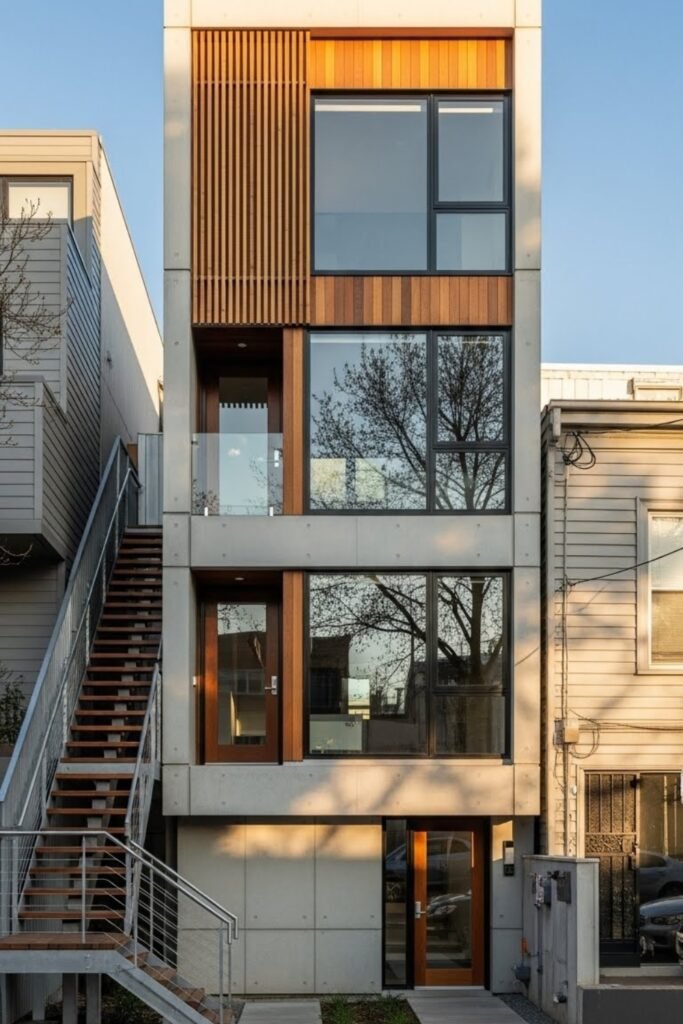 It works well for stacked duplexes where easy access and balanced layouts are important for everyday living.