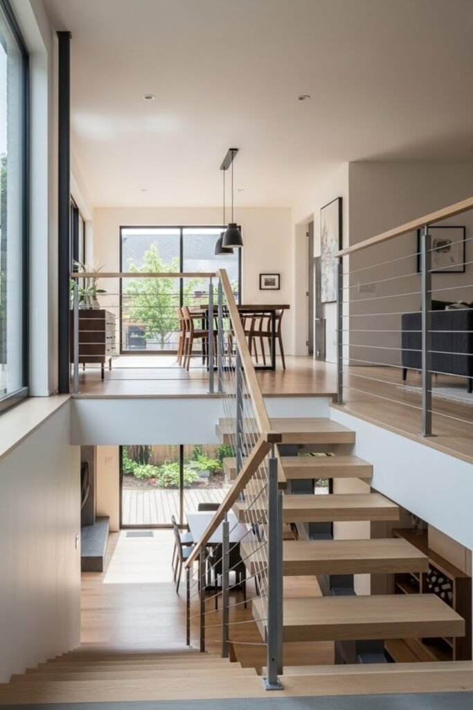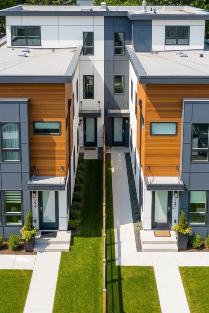 It creates visual interest while keeping spaces connected. Split levels work well for duplexes that want a unique design without increasing overall height.