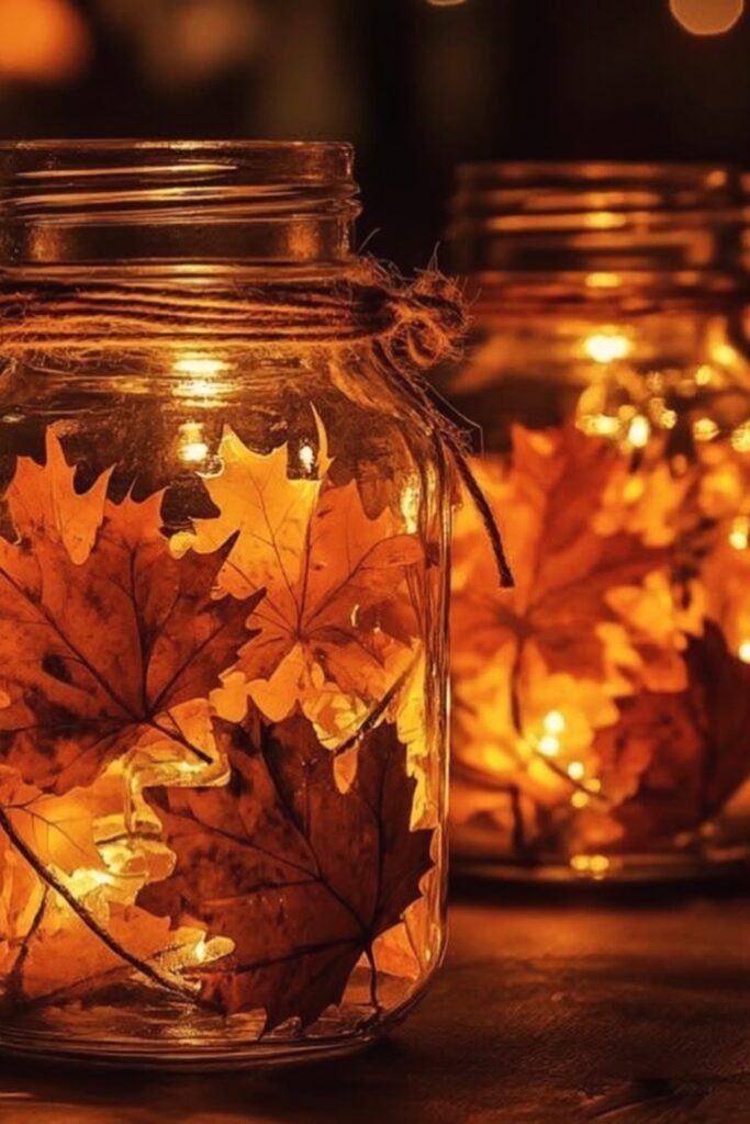 Leaf Mason Jar Lanterns