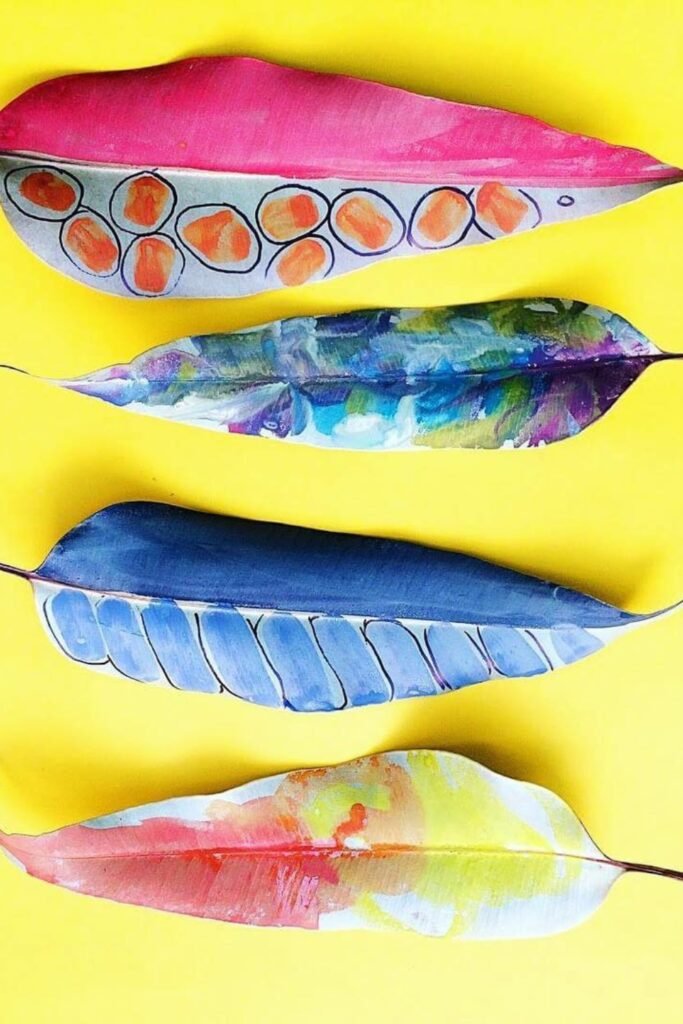 These painted leaf patterns turn nature into a small art museum. Get some smooth leaves, let them dry, and then use acrylics to paint bold patterns or abstract color mixes on them.