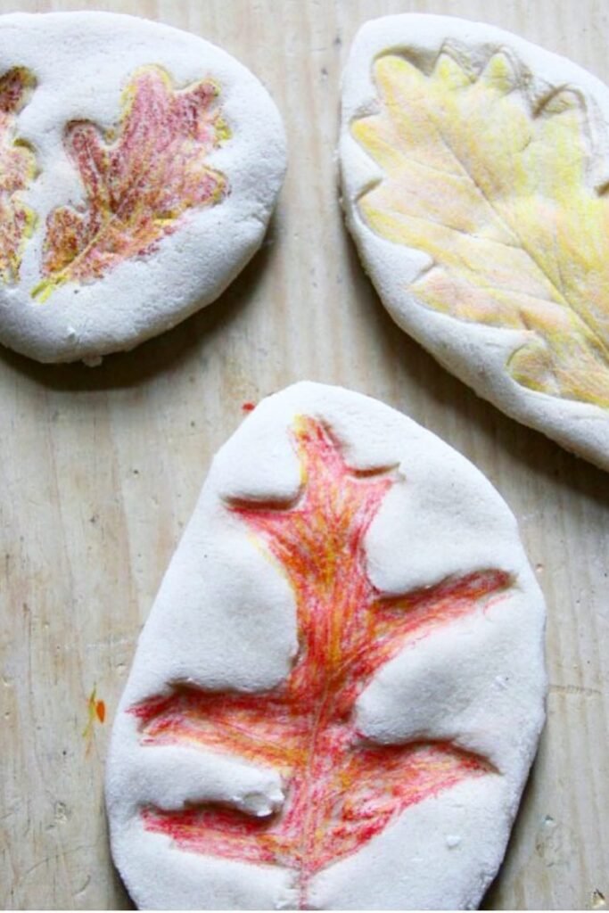 These clay leaf impressions will help you remember nature. Press genuine leaves into soft, air-dry clay to make delicate veins and outlines. Then, use pastels or pencils in fall colors to paint the raised patterns.