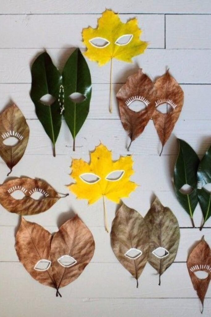You can wear these leaves masquerade masks as art. Pick big, strong leaves, carve out holes for the eyes, and paint white or metallic highlights on them to make them look more dramatic.