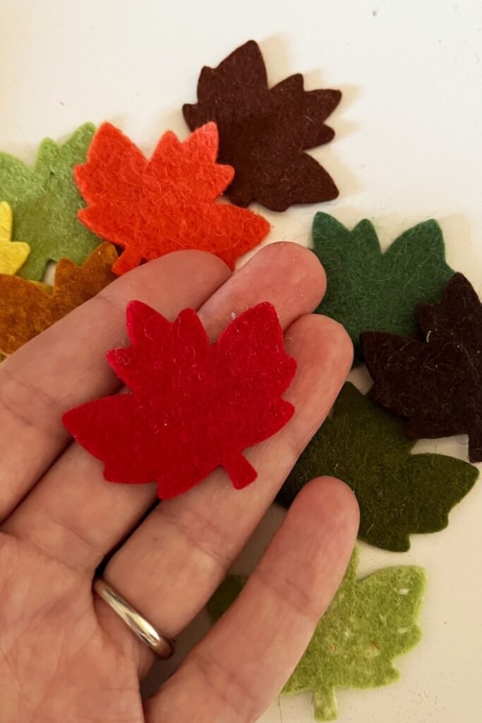 These little, multicolored felt leaf cutouts are great for making things in the fall. You can use them to make wreaths, garlands, or bulletin boards for your school.