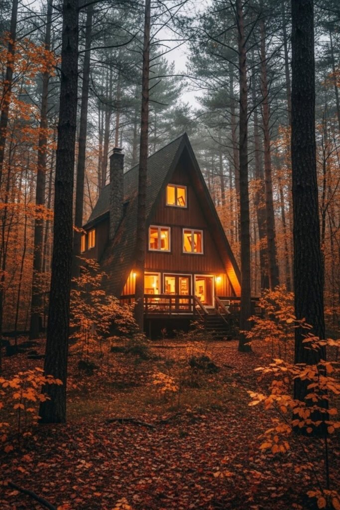 Sharp lines instantly stand out among tall trees. An A-frame forest house sheds rain and snow easily while keeping the footprint small. Its steep roof creates cozy loft spaces inside without complex construction.