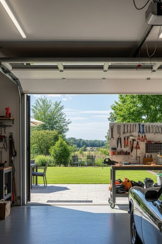 It works well for outdoor projects, entertaining, or flexible work use while still functioning as a standard garage when closed.