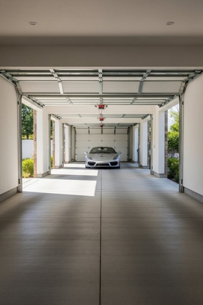 This design is practical for long driveways, backyard access, or trailers. It also improves airflow and natural light while making maneuvering vehicles easier.