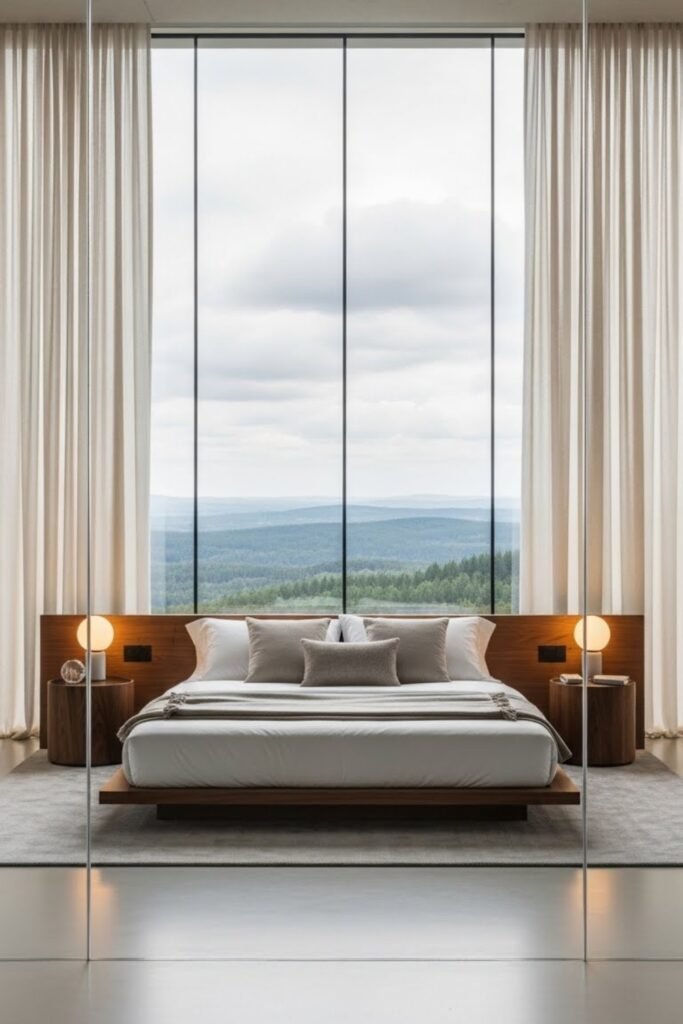 The bedrooms stay visually connected to nature, making waking up and resting feel more immersive. This idea suits luxury homes that prioritize views without sacrificing comfort.