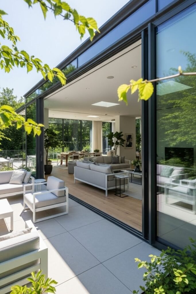 when open, it transforms into an outdoor living space. This idea is ideal for mild climates and homes designed around patios, decks, or gardens.
