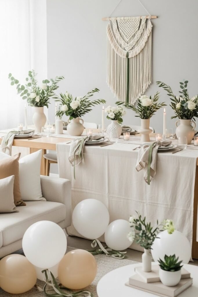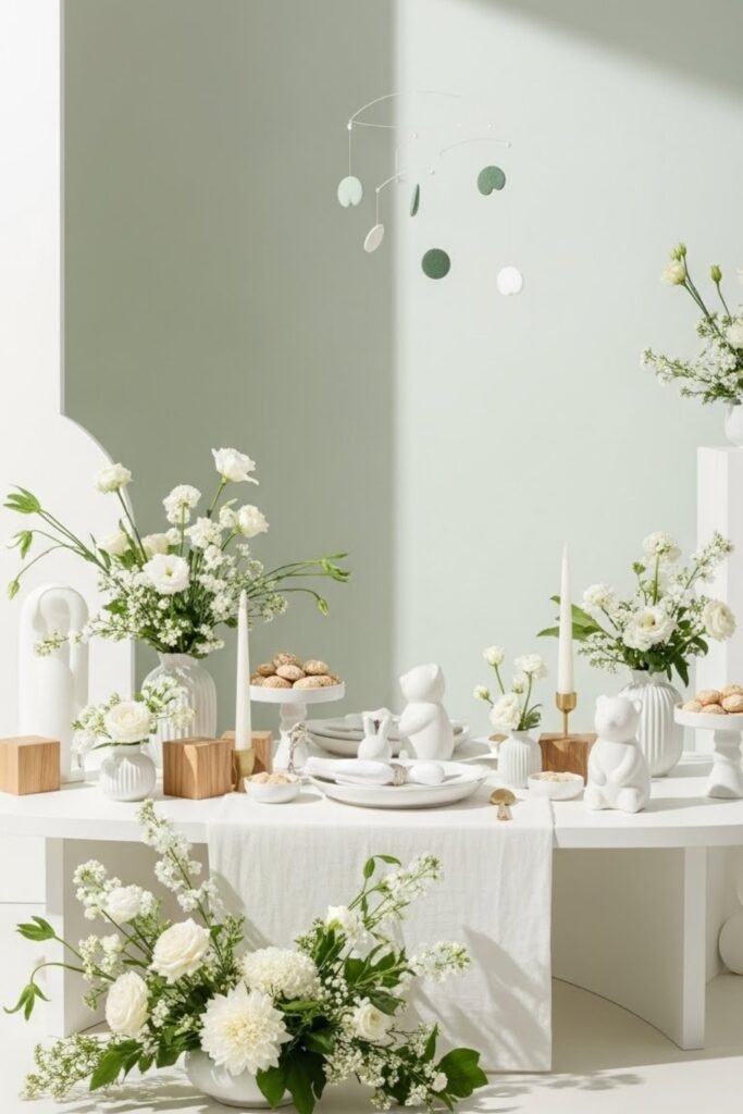 This idea creates a peaceful atmosphere that feels soothing and modern, making it ideal for relaxed baby showers where guests are meant to unwind and connect.
