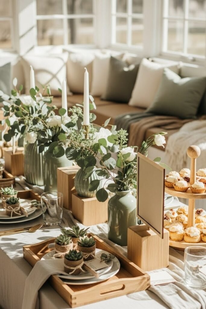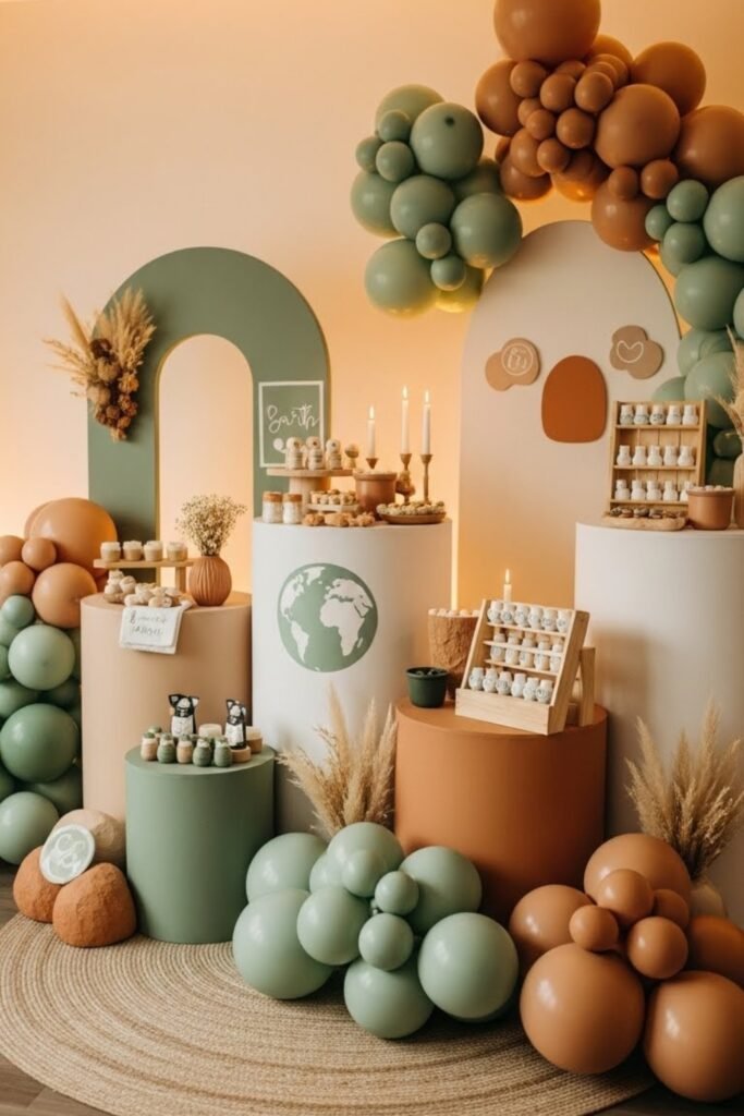 Blend soft green with clay, beige, and warm neutral tones for an earthy, grounded setup. This idea works well for gender-neutral baby showers.