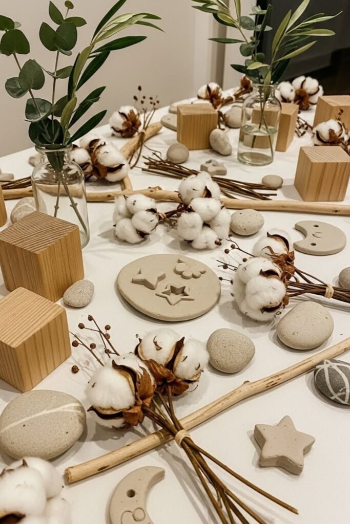 This idea works well for intimate gatherings and gives the baby shower a warm, handcrafted feel without looking rustic or overly traditional.