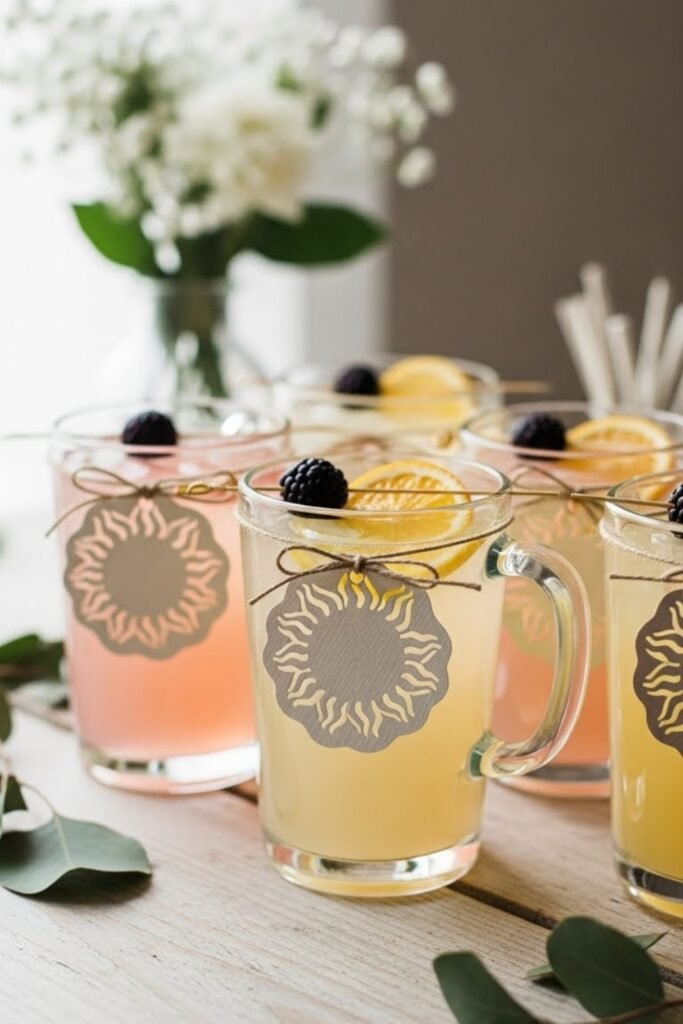 Add small sun-themed tags to drink glasses or bottles using simple shapes and neutral colors.