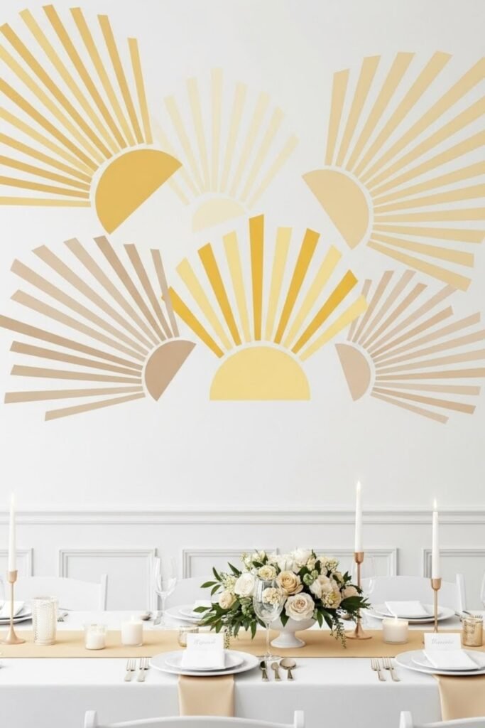 Use removable wall decals shaped like soft sun rays behind the main table or photo area. Stick to muted tones so they enhance the space without dominating it.