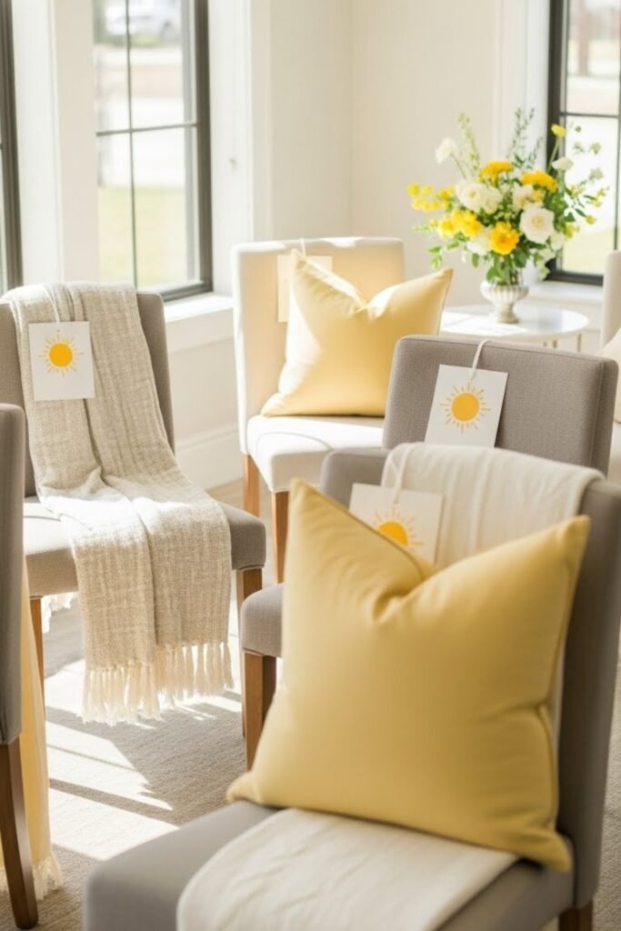 Style guest seating with subtle sun-themed details like small sun-shaped tags tied to chairs or placed on seats. This adds a thoughtful touch without overwhelming the décor.