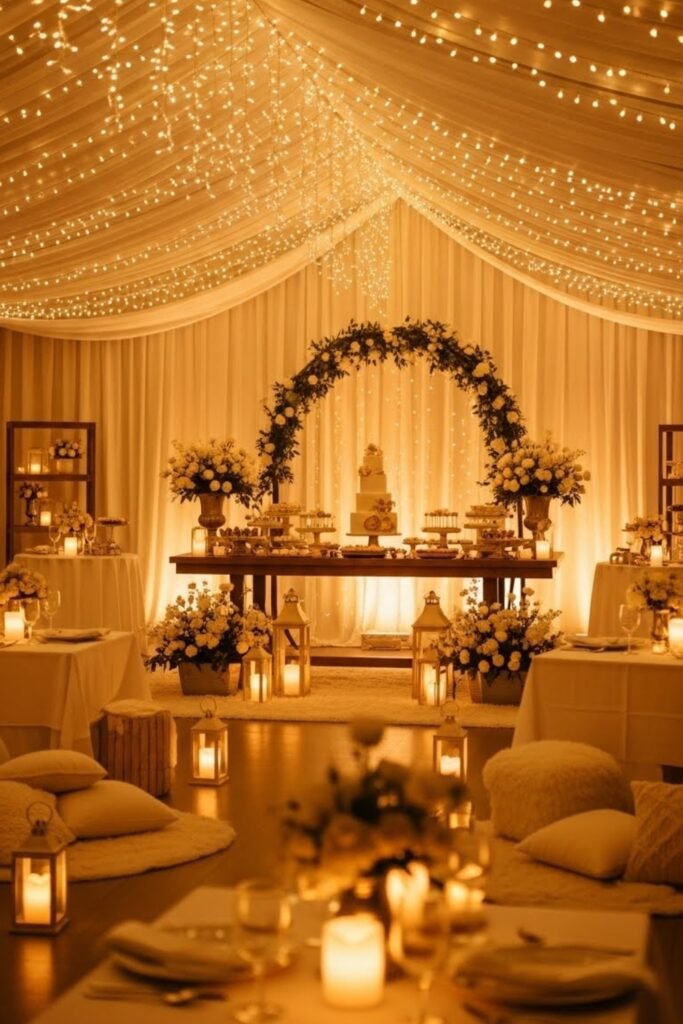 This gently guides guests through the space and draws attention to key areas like the gift or dessert table without using signs or barriers.