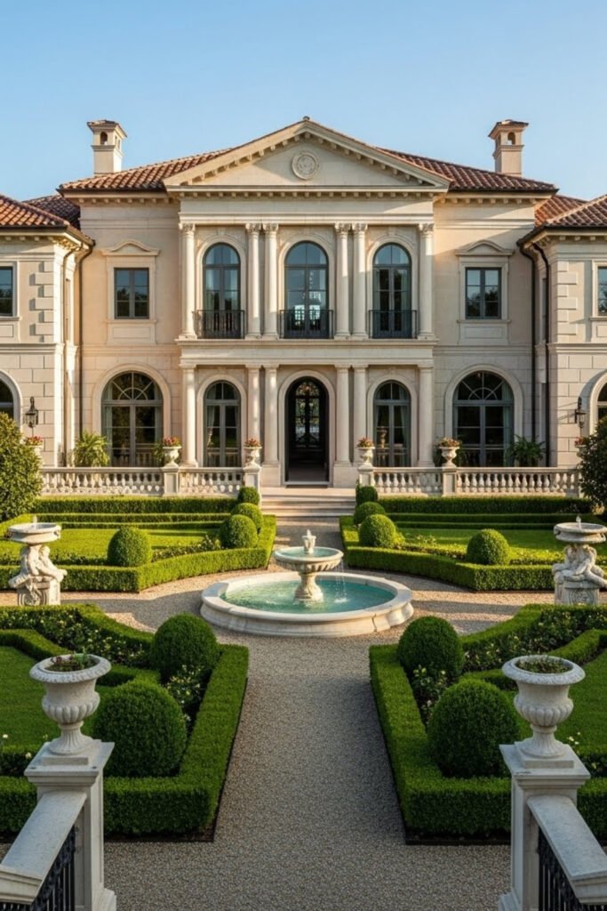 Italian villa–style homes focus on symmetry, proportion, and elegance. Long facades, tall windows, and formal layouts give these homes a grand presence.