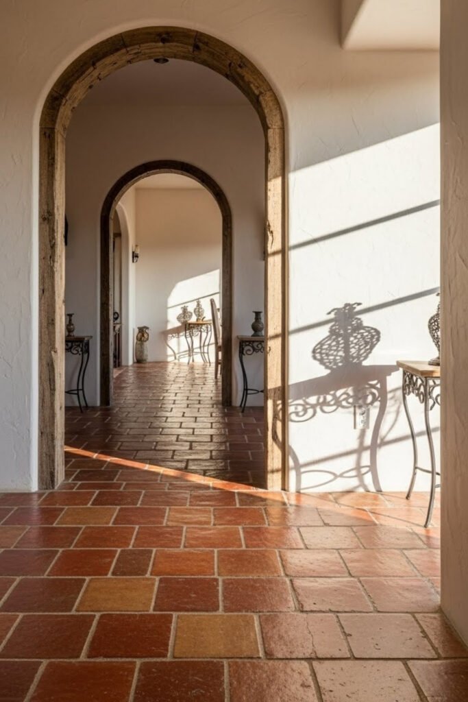 Clay tile floors are a practical and visual staple in Mediterranean homes. They stay cool underfoot and handle heavy foot traffic well.