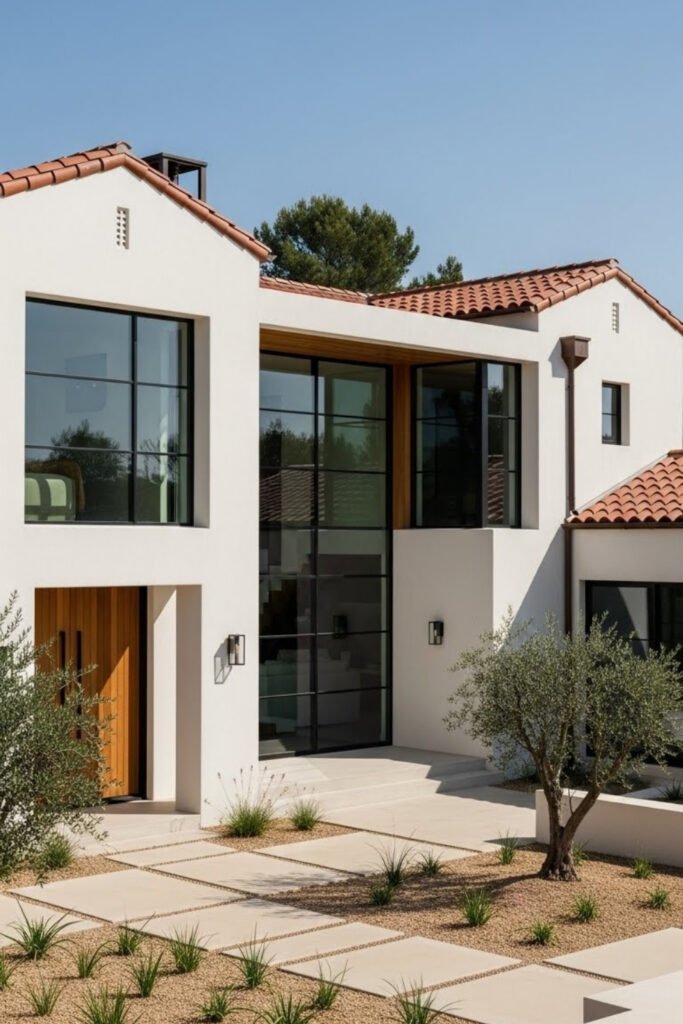 Modern Mediterranean homes blend clean lines with traditional materials. Smooth stucco, large windows, and simple shapes update the classic style without losing its warmth.