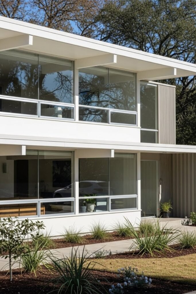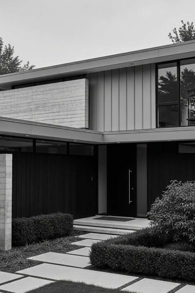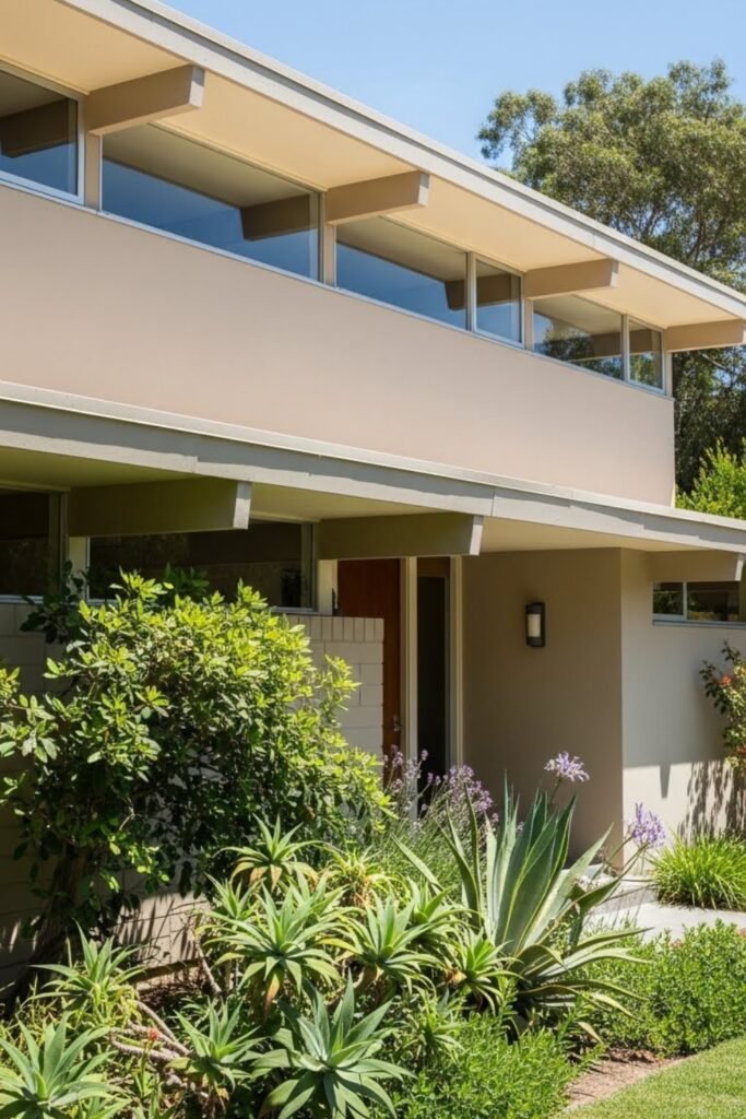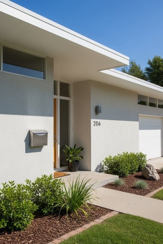 This approach makes the exterior feel custom and design-driven, which is a core principle of mid-century modern homes.