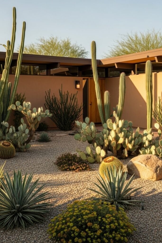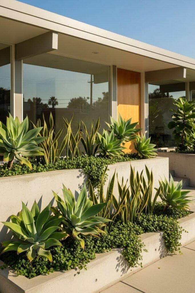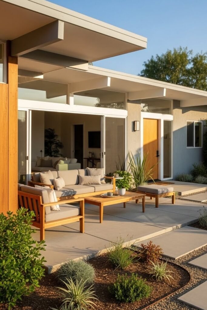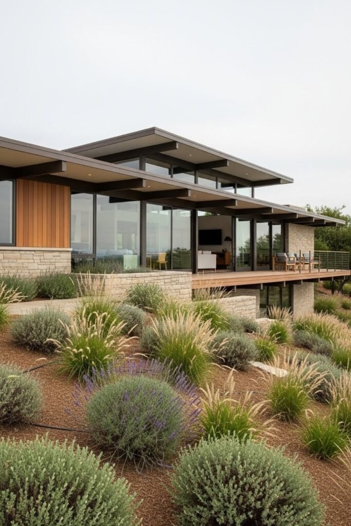 This approach complements the clean lines of mid-century modern exteriors while reducing water use. It also keeps the focus on form and materials rather than dense planting.