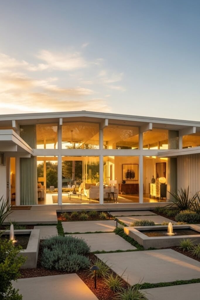 This approach makes the house feel grounded and intentional, which is a core idea of mid-century modern architecture.