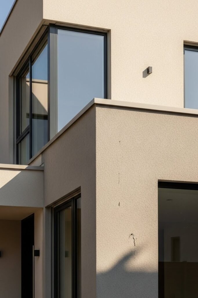 Textured stucco adds subtle depth to a modern exterior without losing its clean appearance. Soft patterns or smooth trowel finishes create visual interest while keeping the color palette minimal.
