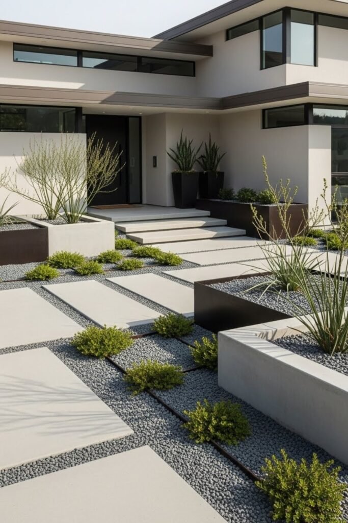 This style reduces maintenance while reinforcing sharp lines and open spaces, making the exterior feel calm, intentional, and well-designed.