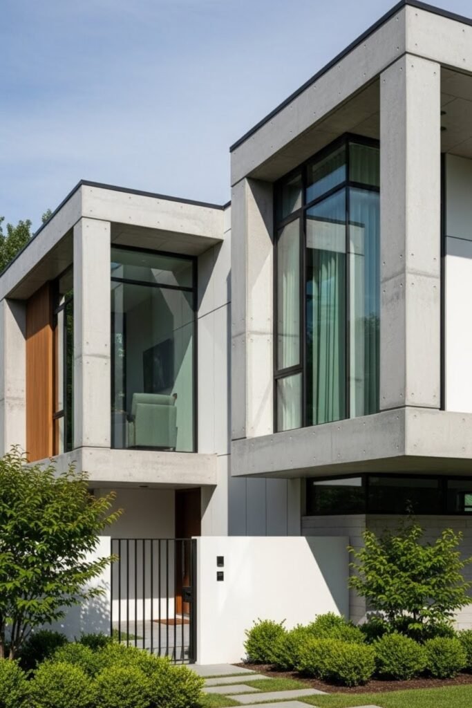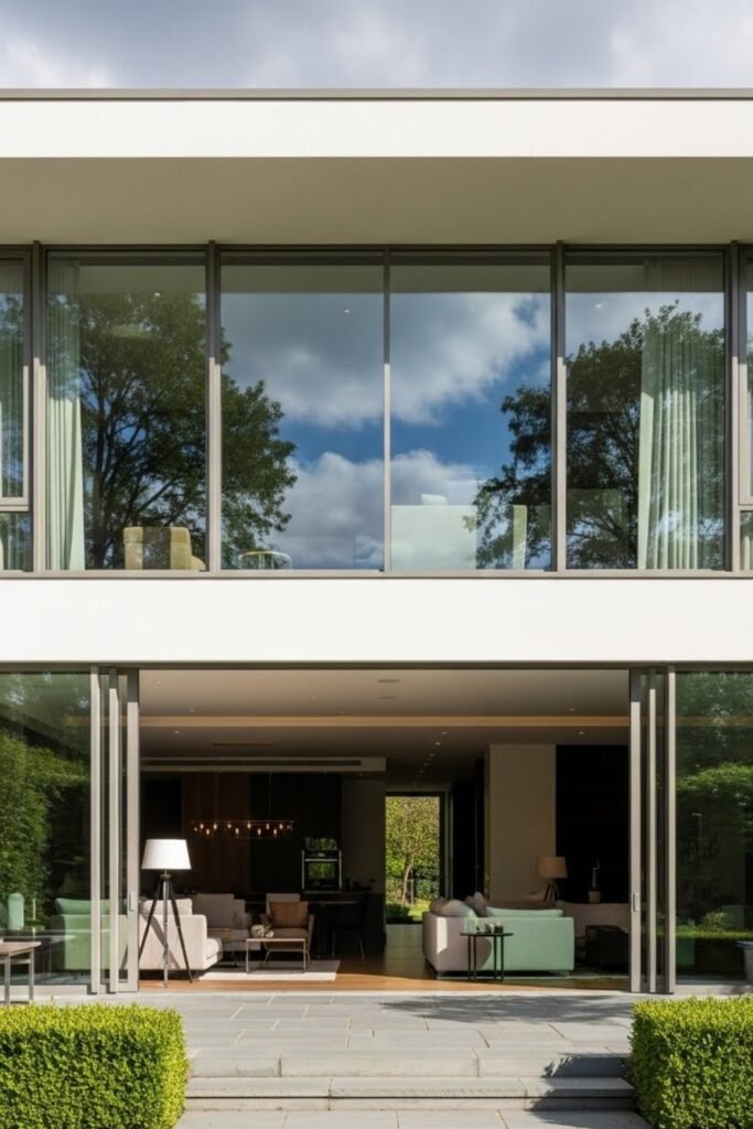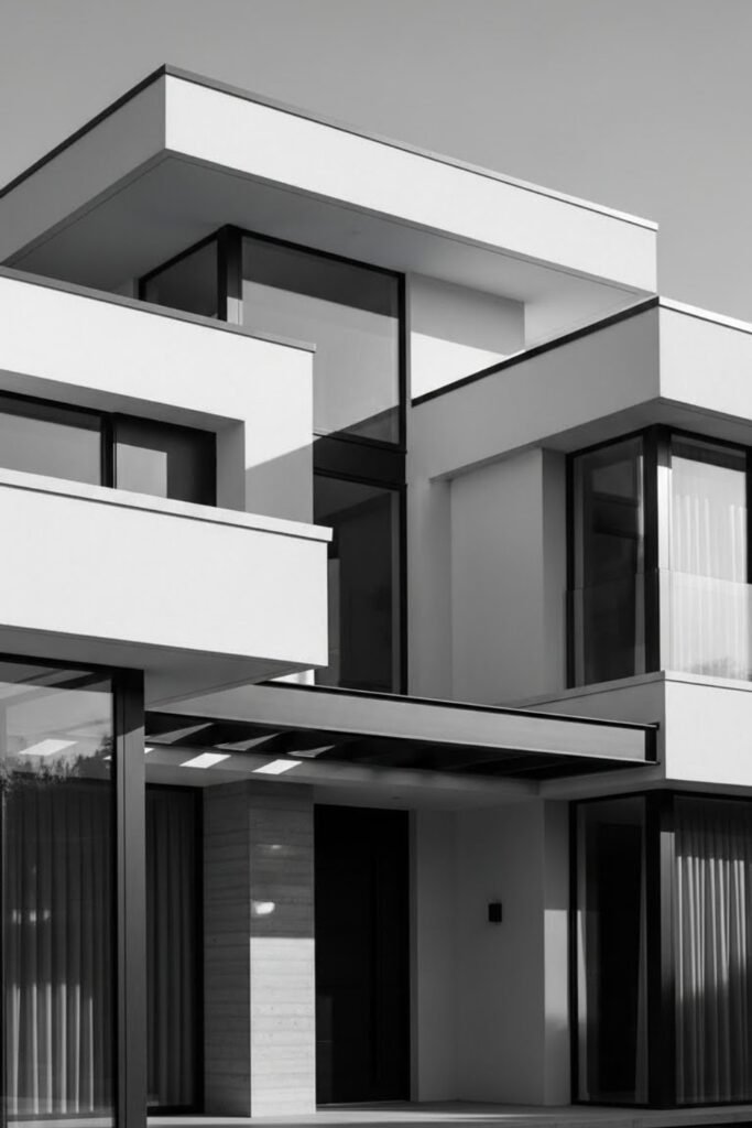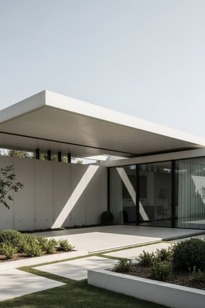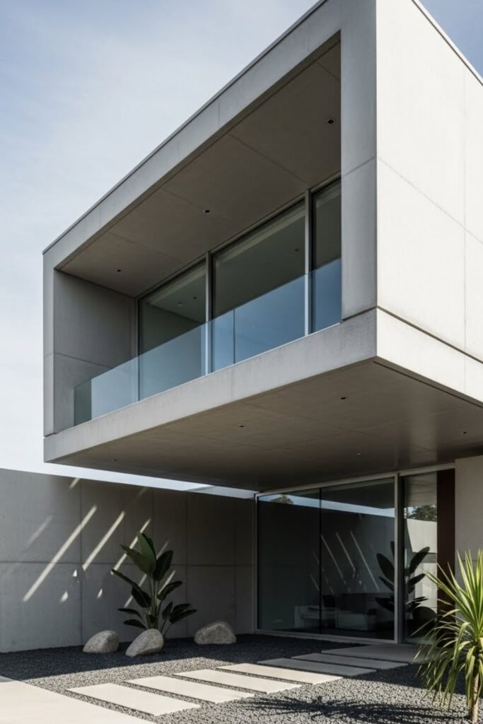 This style works especially well with flat roofs, concrete finishes, and large glass panels, giving the home a sleek, high-end appearance without adding visual heaviness.