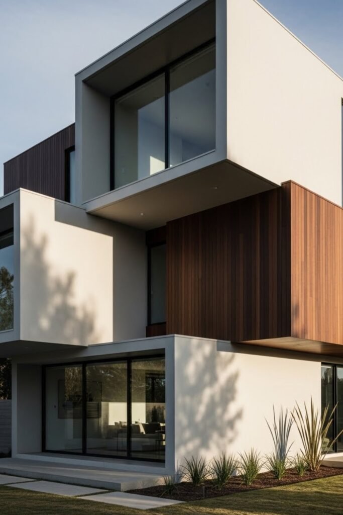 Box-style volumes stack rectangular forms at different depths to create a bold modern exterior. This approach adds dimension without decorative elements.
