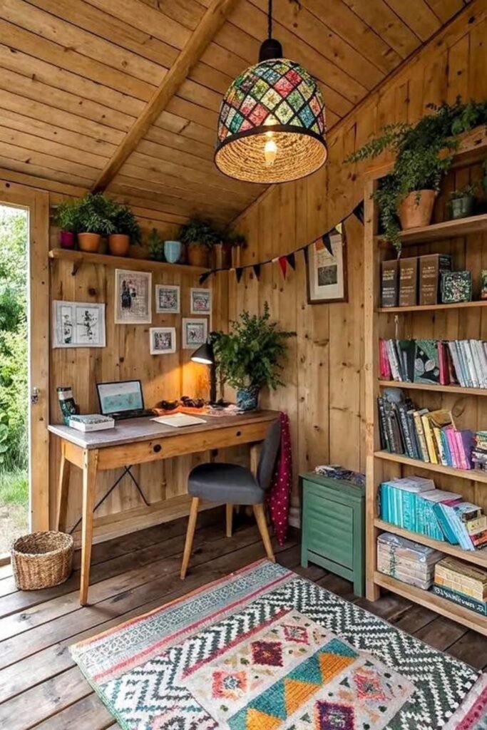 A wood-lined workspace lets you build a quiet retreat where warm tones and handcrafted details naturally encourage focus during long working hours.
