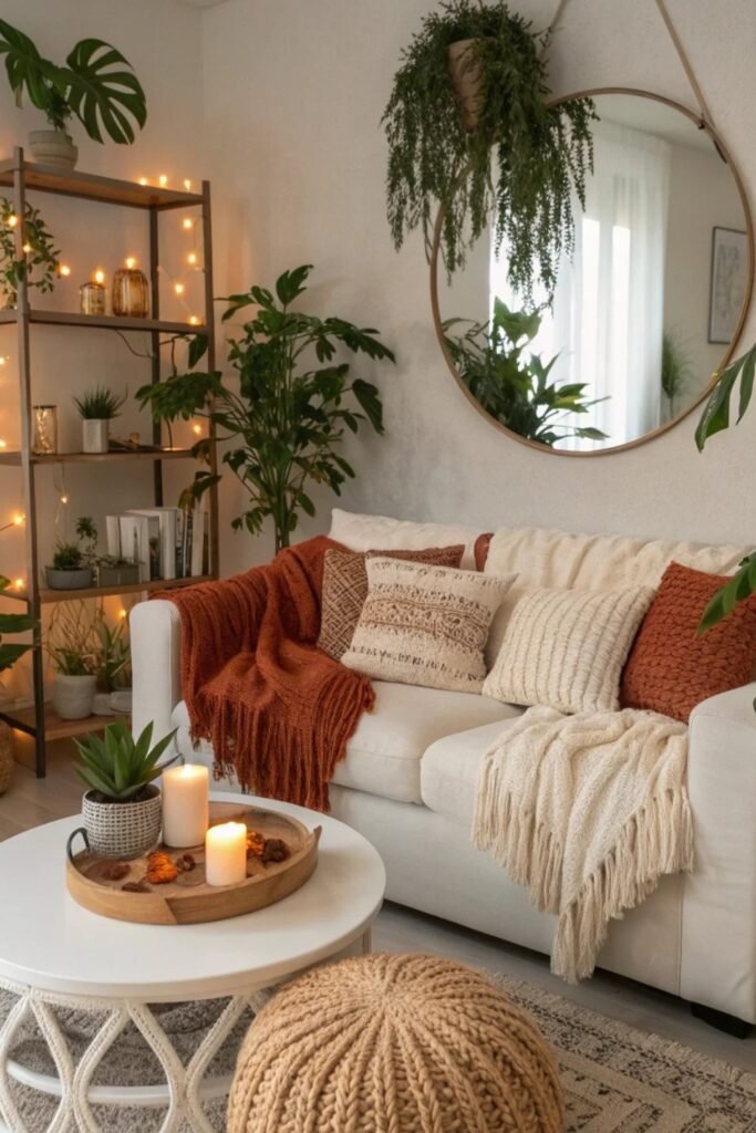 Warm Boho Sofa Layering
