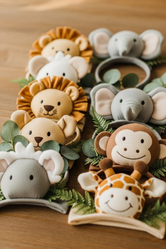 Offer soft safari animal ear headbands in neutral colors for guests to wear. Keep designs minimal so adults feel comfortable joining in.