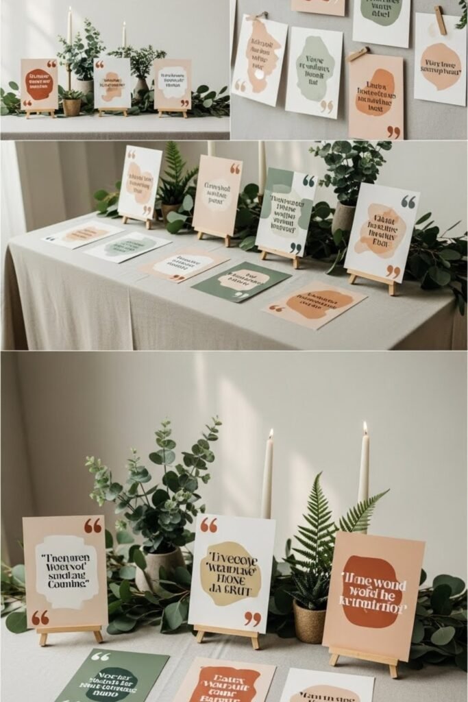 Place short safari or adventure-inspired quotes on table cards or wall prints. Use clean fonts and earthy colors to keep them elegant.