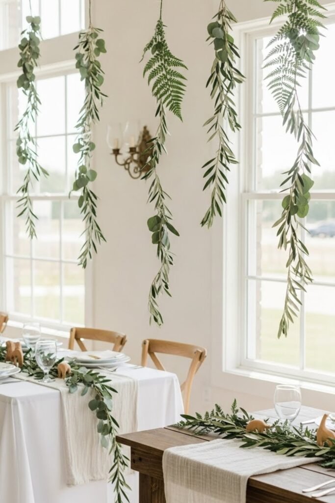 Hang lightweight garlands made from faux or paper leaves along walls, tables, or entryways. Keep spacing loose so it feels natural rather than dense.