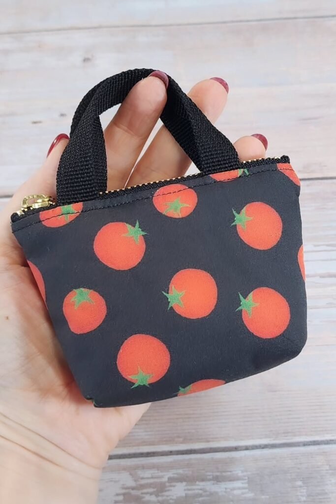 Tiny handled pouches feel playful when bold fruit prints replace neutrals and make everyday storage feel intentional again today.