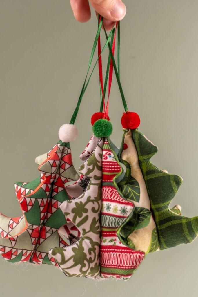Holiday trees feel more personal when ornaments carry fabric stories rather than fragile glass memories.