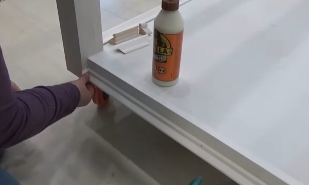 Cut, miter, and attach the trim around the base using small nails or wood glue. This step will hide and give the table a clean, polished look.