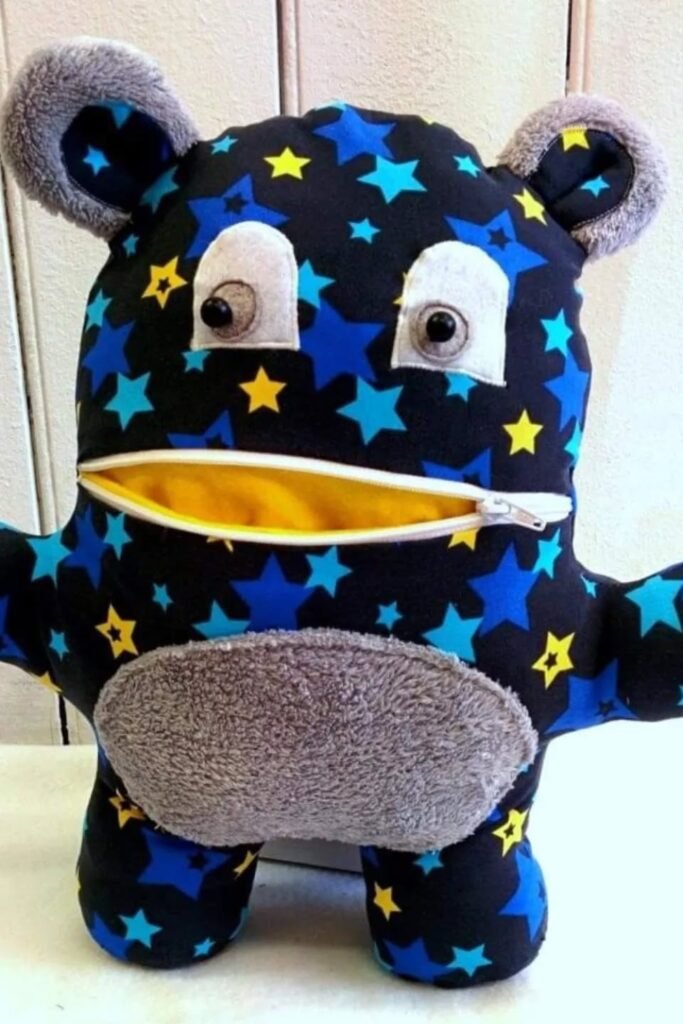 You can simply make a fun zipper monster out of scraps of fabric that may be used as storage and a beginner-friendly soft toy.