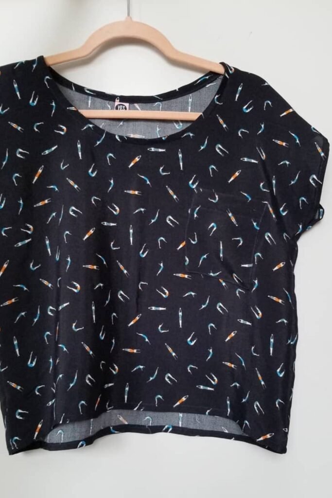 Boxy pull-on tops give beginners confidence without darts, zippers, or fitting tension that can make them feel bad about their first item.
