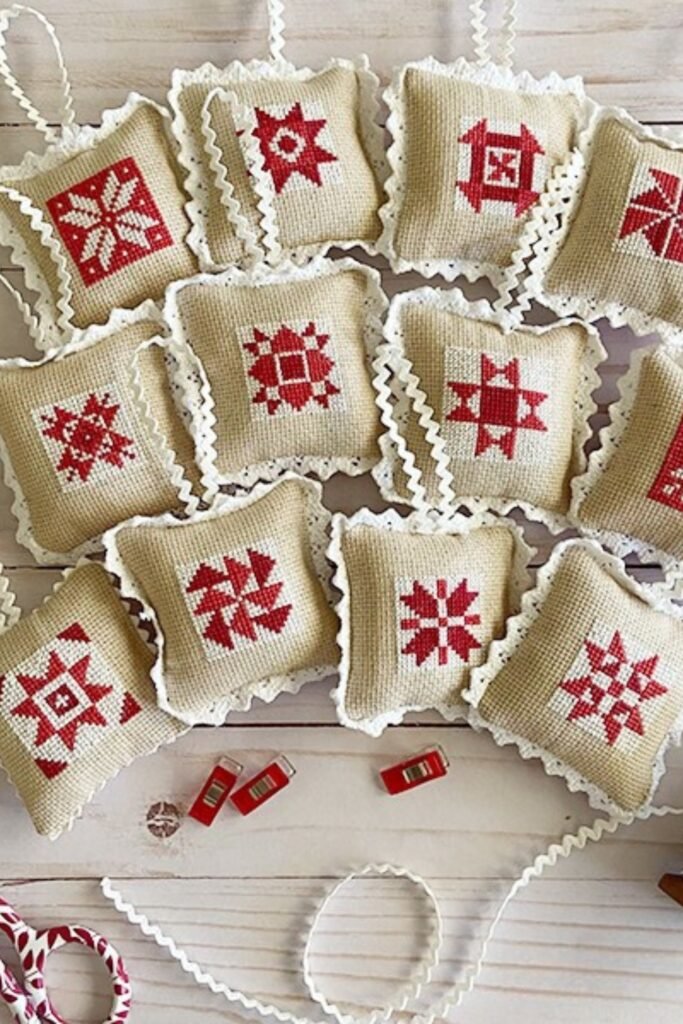 This craft is great for using up linen scraps and practicing sewing with straight edges, centered designs, and little filler that stays the shape uniform.